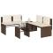 Salon de jardin 4 pcs avec coussins marron résine tresséeCet ensemble de canapés de jardin est le complément parfait de votre arrière-cour, terrasse ou patio, offrant un espace confortable et accueillant pour discuter avec la famille et les amis ou simplement se détendre et profiter de l'extérieur. Matériau durable : la résine tressée, également connue sous le nom de poly rotin, est un matériau synthétique solide et nécessitant peu d'entretien qui ressemble au rotin naturel. Il est léger, facile à nettoyer et couramment utilisé pour les meubles d'extérieur en raison de sa durabilité et de ses propriétés de résistance aux intempéries.Expérience d'assise confortable : ce mobilier d'extérieur, doté de coussins épais, offre une expérience d'assise confortable.Housse amovible et lavable : Ce coussin de siège est doté d'une housse amovible pour un lavage et un entretien faciles.Dessus en verre : le dessus de la table d'extérieur est fabriqué en verre trempé solide et durable, ce qui le rend facile à nettoyer avec un chiffon humide et ajoute une touche d'élégance à votre espace extérieur.Cadre robuste et stable : le cadre en acier enduit de poudre assure la solidité et la stabilité du meuble de jardin pour une utilisation quotidienne à l'extérieur. Bon à savoir :Pour que vos meubles d'extérieur restent beaux, nous vous recommandons de les protéger avec une housse imperméable. Maximum 110 kg par siège. Soyez conscient du risque de feux ouverts et d'autres sources de forte chaleur à proximité du produit.