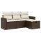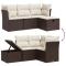 Salon de jardin 4 pcs avec coussins marron résine tresséeCet ensemble de canapés de jardin est le complément parfait de votre arrière-cour, terrasse ou patio, offrant un espace confortable et accueillant pour discuter avec la famille et les amis ou simplement se détendre et profiter de l'extérieur. Matériau durable : la résine tressée, également connue sous le nom de poly rotin, est un matériau synthétique solide et nécessitant peu d'entretien qui ressemble au rotin naturel. Il est léger, facile à nettoyer et couramment utilisé pour les meubles d'extérieur en raison de sa durabilité et de ses propriétés de résistance aux intempéries.Expérience d'assise confortable : ce mobilier d'extérieur, doté de coussins épais, offre une expérience d'assise confortable.Housse amovible et lavable : ces coussins de siège sont dotés de housses amovibles pour un lavage et un entretien faciles.Cadre robuste et stable : le cadre en acier enduit de poudre assure la solidité et la stabilité du meuble de jardin pour une utilisation quotidienne à l'extérieur.Conception modulaire : cet ensemble de meubles d'extérieur a une conception modulaire, ce qui le rend complètement flexible et facile à déplacer, afin que vous puissiez créer un agencement de meubles d'extérieur personnalisé. Bon à savoir :Pour que vos meubles d'extérieur restent beaux, nous vous recommandons de les protéger avec une housse imperméable.