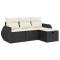 Salon de jardin 4 pcs avec coussins noir résine tresséeCet ensemble de canapés de jardin est le complément parfait de votre arrière-cour, terrasse ou patio, offrant un espace confortable et accueillant pour discuter avec la famille et les amis ou simplement se détendre et profiter de l'extérieur. Matériau durable : la résine tressée, également connue sous le nom de poly rotin, est un matériau synthétique solide et nécessitant peu d'entretien qui ressemble au rotin naturel. Elle est légère, facile à nettoyer et couramment utilisée pour les meubles d'extérieur en raison de sa durabilité et de ses propriétés de résistance aux intempéries.Fonction de rangement avec sac résistant à l'eau : le mobilier de jardin dispose d'un espace de rangement sous l'assise, complété par un sac résistant à l'eau pour ranger coussins, jouets et autres objets. Le sac intérieur peut être solidement fixé au mobilier d'extérieur grâce à des attaches auto-agrippantes pour plus de stabilité.Pouf polyvalent : le tabouret est polyvalent, servant de repose-pieds confortable lorsque vous vous prélassez sur le canapé ou de siège supplémentaire dans votre jardin.Housse amovible et lavable : ces coussins de siège sont dotés de housses amovibles pour un lavage et un entretien faciles.Conception modulaire : cet ensemble de meubles d'extérieur a une conception modulaire, ce qui le rend complètement flexible et facile à déplacer, afin que vous puissiez créer un agencement de meubles d'extérieur personnalisé. Bon à savoir :Pour que vos meubles d'extérieur restent beaux, nous vous recommandons de les protéger avec une housse imperméable.