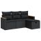 Salon de jardin 4 pcs avec coussins noir résine tresséeCet ensemble de canapés de jardin est le complément parfait de votre arrière-cour, terrasse ou patio, offrant un espace confortable et accueillant pour discuter avec la famille et les amis ou simplement se détendre et profiter de l'extérieur. Matériau durable : la résine tressée, également connue sous le nom de poly rotin, est un matériau synthétique solide et nécessitant peu d'entretien qui ressemble au rotin naturel. Elle est légère, facile à nettoyer et couramment utilisée pour les meubles d'extérieur en raison de sa durabilité et de ses propriétés de résistance aux intempéries.Fonction de rangement avec sac résistant à l'eau : le mobilier de jardin dispose d'un espace de rangement sous l'assise, complété par un sac résistant à l'eau pour ranger coussins, jouets et autres objets. Le sac intérieur peut être solidement fixé au mobilier d'extérieur grâce à des attaches auto-agrippantes pour plus de stabilité.Pouf polyvalent : le tabouret est polyvalent, servant de repose-pieds confortable lorsque vous vous prélassez sur le canapé ou de siège supplémentaire dans votre jardin.Housse amovible et lavable : ces coussins de siège sont dotés de housses amovibles pour un lavage et un entretien faciles.Conception modulaire : cet ensemble de meubles d'extérieur a une conception modulaire, ce qui le rend complètement flexible et facile à déplacer, afin que vous puissiez créer un agencement de meubles d'extérieur personnalisé. Bon à savoir :Pour que vos meubles d'extérieur restent beaux, nous vous recommandons de les protéger avec une housse imperméable.