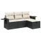 Salon de jardin 4 pcs avec coussins noir résine tresséeCet ensemble de canapés de jardin est le complément parfait de votre arrière-cour, terrasse ou patio, offrant un espace confortable et accueillant pour discuter avec la famille et les amis ou simplement se détendre et profiter de l'extérieur. Matériau durable : la résine tressée, également connue sous le nom de poly rotin, est un matériau synthétique solide et nécessitant peu d'entretien qui ressemble au rotin naturel. Il est léger, facile à nettoyer et couramment utilisé pour les meubles d'extérieur en raison de sa durabilité et de ses propriétés de résistance aux intempéries.Expérience d'assise confortable : ce mobilier d'extérieur, doté de coussins épais, offre une expérience d'assise confortable.Housse amovible et lavable : ces coussins de siège sont dotés de housses amovibles pour un lavage et un entretien faciles.Cadre robuste et stable : le cadre en acier enduit de poudre assure la solidité et la stabilité du meuble de jardin pour une utilisation quotidienne à l'extérieur.Conception modulaire : cet ensemble de meubles d'extérieur a une conception modulaire, ce qui le rend complètement flexible et facile à déplacer, afin que vous puissiez créer un agencement de meubles d'extérieur personnalisé. Bon à savoir :Pour que vos meubles d'extérieur restent beaux, nous vous recommandons de les protéger avec une housse imperméable.