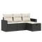 Salon de jardin 4 pcs avec coussins noir résine tresséeCet ensemble de canapés de jardin est le complément parfait de votre arrière-cour, terrasse ou patio, offrant un espace confortable et accueillant pour discuter avec la famille et les amis ou simplement se détendre et profiter de l'extérieur. Matériau durable : la résine tressée, également connue sous le nom de poly rotin, est un matériau synthétique solide et nécessitant peu d'entretien qui ressemble au rotin naturel. Il est léger, facile à nettoyer et couramment utilisé pour les meubles d'extérieur en raison de sa durabilité et de ses propriétés de résistance aux intempéries.Expérience d'assise confortable : ce mobilier d'extérieur, doté de coussins épais, offre une expérience d'assise confortable.Housse amovible et lavable : ces coussins de siège sont dotés de housses amovibles pour un lavage et un entretien faciles.Cadre robuste et stable : le cadre en acier enduit de poudre assure la solidité et la stabilité du meuble de jardin pour une utilisation quotidienne à l'extérieur.Conception modulaire : cet ensemble de meubles d'extérieur a une conception modulaire, ce qui le rend complètement flexible et facile à déplacer, afin que vous puissiez créer un agencement de meubles d'extérieur personnalisé. Bon à savoir :Pour que vos meubles d'extérieur restent beaux, nous vous recommandons de les protéger avec une housse imperméable.