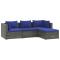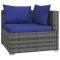 Salon de jardin 4 pcs avec coussins résine tressée grisDétendez-vous et profitez de vos loisirs avec cet ensemble de meubles de jardin très tendance ! Il est conçu pour répondre à une variété de vos différents besoins. Cadre robuste : cet ensemble de meubles de patio est doté d'un cadre solide en acier enduit de poudre et de pieds en plastique chromé, ce qui est très durable.Matériau haut de gamme : l'ensemble de canapés de jardin est conçu avec de la résine tressée imperméable, ce qui le rend facile à nettoyer, résistant à l'usure et adapté à une utilisation quotidienne à l'extérieur.Design modulaire : la conception modulaire permet de placer l'ensemble dans n'importe quelle disposition ou de le combiner avec d'autres segments modulaires pour répondre à vos besoins.Coussins et oreillers confortables : les coussins et les oreillers bien rembourrés et amovibles offrent un confort optimal pour votre assise en plein air. Remarque :Afin de prolonger la durée de vie de votre mobilier d'extérieur, nous vous recommandons de le protéger avec une housse imperméable.