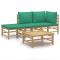 Salon de jardin 4 pcs avec coussins vert bambouSavourez une tasse de café ou de thé par beau temps dans votre espace extérieur avec cet élégant ensemble de salon de jardin en bambou ! Matériau durable : le bambou est connu pour sa flexibilité et sa dureté. Les meubles en bambou sont une bonne option lorsque vous voulez des meubles d'extérieur solides fabriqués à partir de matériaux naturels.Expérience d'assise confortable : le dossier et l'accoudoir ajoutent un confort d'assise supplémentaire pour l'ensemble de canapé de jardin. De plus, les coussins d'assise et de dossier moelleux offrent un confort pendant votre temps d'assise.Table pratique : la table robuste est parfaite pour placer des repas, des boissons et d'autres objets décoratifs.Conception modulaire : l'ensemble de salon est flexible et facile à déplacer, vous pouvez donc le combiner avec d'autres segments modulaires dans la boutique en ligne pour créer vos propres configurations d'ensemble de salon d'extérieur ! Remarque :Pour que vos meubles d'extérieur restent beaux, nous vous recommandons de les protéger avec une housse imperméable.Bon à savoir :Pour faciliter au maximum le montage, chaque produit est livré avec des instructions.
