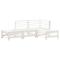 Salon de jardin 4 pcs blanc bois de pin massifCe salon de jardin en bois, qui se démarque par son design à lattes, sera un excellent supplément à votre jardin, patio ou terrasse pour profiter d'un moment agréable avec votre famille ou vos amis. Bois de pin massif : le bois de pin massif est un matériau naturel magnifique. Le bois de pin a un grain droit et les noeuds donnent au matériau son aspect caractéristique et rustique.Cadre robuste et stable : les cadres en bois rendent l'ensemble de salon robuste et stable pour une utilisation quotidienne à l'extérieur.Design modulaire : le canapé est flexible et facile à déplacer. Vous pouvez le combiner avec d'autres segments modulaires de la boutique en ligne pour créer vos propres configurations de salon de jardin ! Bon à savoir :Pour que vos meubles d'extérieur restent beaux, nous vous recommandons de les protéger avec une housse imperméable.Les coussins ne sont pas inclus dans la livraison. Maximum 110 kg par siège.
