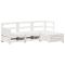 Salon de jardin 4 pcs blanc bois de pin massifCet ensemble de salon de jardin en bois avec un design à lattes sera un excellent complément à votre jardin, patio ou terrasse pour profiter d'un moment agréable avec votre famille ou vos amis. Matériau robuste et durable : le bois de pin massif est connu pour sa résistance et sa durabilité. Ses grains droits et ses noeuds distinctifs contribuent à son charme rustique. Bien ventilé et prévention de l'accumulation d'eau : la conception à lattes favorise une circulation optimale de l'air et empêche efficacement l'accumulation d'eau, assurant ainsi une assise sèche et confortable. Utilisation polyvalente : le repose-pied de jardin peut non seulement être utilisé pour s'asseoir ou se détendre, mais il peut également être utilisé comme table basse pour contenir vos boissons, votre nourriture et d'autres décorations. Table d'appoint pratique : ce mobilier d'extérieur comprend une table d'appoint pliable avec un ressort à gaz sur les accoudoirs, offrant un endroit pratique pour garder vos essentiels à portée de main. Conception modulaire : cet ensemble de meubles d'extérieur a une conception modulaire, ce qui le rend complètement flexible et facile à déplacer, afin que vous puissiez créer un agencement de meubles d'extérieur personnalisé. Bon à savoir :Pour que vos meubles d'extérieur restent beaux, nous vous recommandons de les protéger avec une housse imperméable. Maximum 110 kg par siège.