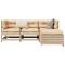 Salon de jardin 4 pcs bois massif de pinCet ensemble de salon de jardin en bois avec un design à lattes sera un excellent complément à votre jardin, patio ou terrasse pour profiter d'un moment agréable avec votre famille ou vos amis. Matériau robuste et durable : le bois de pin massif est connu pour sa résistance et sa durabilité. Ses grains droits et ses noeuds distinctifs contribuent à son charme rustique. Bien ventilé et prévention de l'accumulation d'eau : la conception à lattes favorise une circulation optimale de l'air et empêche efficacement l'accumulation d'eau, assurant ainsi une assise sèche et confortable. Utilisation polyvalente : le repose-pied de jardin peut non seulement être utilisé pour s'asseoir ou se détendre, mais il peut également être utilisé comme table basse pour contenir vos boissons, votre nourriture et d'autres décorations. Conception modulaire : cet ensemble de meubles d'extérieur a une conception modulaire, ce qui le rend complètement flexible et facile à déplacer, afin que vous puissiez créer un agencement de meubles d'extérieur personnalisé. Bon à savoir : Pour que vos meubles d'extérieur restent beaux, nous vous recommandons de les protéger avec une housse imperméable. Maximum 110 kg par siège.