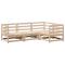 Salon de jardin 4 pcs bois massif de pinCet ensemble de canapés de jardin est le complément parfait de votre arrière-cour, terrasse ou patio, offrant un espace confortable et accueillant pour discuter avec la famille et les amis ou simplement se détendre et profiter de l'extérieur. Matériau robuste et durable : le bois de pin massif est connu pour sa résistance et sa durabilité. Ses grains droits et ses noeuds distinctifs contribuent à son charme rustique. Bien ventilé et prévention de l'accumulation d'eau : la conception à lattes favorise une circulation optimale de l'air et empêche efficacement l'accumulation d'eau, assurant ainsi une assise sèche et confortable. Conception modulaire : cet ensemble de meubles d'extérieur a une conception modulaire, ce qui le rend complètement flexible et facile à déplacer, afin que vous puissiez créer un agencement de meubles d'extérieur personnalisé. Bon à savoir : Pour que vos meubles d'extérieur restent beaux, nous vous recommandons de les protéger avec une housse imperméable. Maximum 110 kg par siège.
