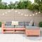 Salon de jardin 4 pcs bois massif sapin de douglasCet ensemble de salon de jardin en bois avec un design à lattes sera un excellent complément à votre jardin, patio ou terrasse pour profiter d'un moment agréable avec votre famille ou vos amis. Matériau robuste et durable : le bois de sapin de douglas est connu pour sa résistance et sa durabilité. Sa couleur brun rougeâtre riche et ses grains uniques dégagent une ambiance chaleureuse et naturelle. Sa stabilité et sa résistance aux intempéries sont idéales pour la fabrication de meubles d'intérieur et d'extérieur. Bien ventilé et prévention de l'accumulation d'eau : la conception à lattes favorise une circulation optimale de l'air et empêche efficacement l'accumulation d'eau, assurant ainsi une assise sèche et confortable. Utilisation polyvalente : le repose-pied de jardin peut non seulement être utilisé pour s'asseoir ou se détendre, mais il peut également être utilisé comme table basse pour contenir vos boissons, votre nourriture et d'autres décorations. Table d'appoint pratique : ce mobilier d'extérieur comprend une table d'appoint pliable avec un ressort à gaz sur les accoudoirs, offrant un endroit pratique pour garder vos essentiels à portée de main. Conception modulaire : cet ensemble de meubles d'extérieur a une conception modulaire, ce qui le rend complètement flexible et facile à déplacer, afin que vous puissiez créer un agencement de meubles d'extérieur personnalisé. Bon à savoir :Pour que vos meubles d'extérieur restent beaux, nous vous recommandons de les protéger avec une housse imperméable. Maximum 110 kg par siège.