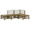 Salon de jardin 4 pcs bois de pin imprégnéCe salon de jardin en bois, qui se démarque par son design à lattes, sera un excellent supplément à votre jardin, patio ou terrasse pour profiter d'un moment agréable avec votre famille ou vos amis. Bois imprégné : le bois de pin massif est un matériau naturel magnifique. Le bois de pin a un grain droit et les noeuds lui confèrent un aspect rustique caractéristique. L'imprégnation est un processus de conservation réalisé à l'aide d'autoclaves. Le traitement sous pression augmente la résistance à la pourriture et aux intempéries.Cadre robuste et stable : les cadres en bois rendent l'ensemble de salon robuste et stable pour une utilisation quotidienne à l'extérieur.Design modulaire : le canapé est flexible et facile à déplacer. Vous pouvez le combiner avec d'autres segments modulaires de la boutique en ligne pour créer vos propres configurations de salon de jardin ! Bon à savoir :Pour que vos meubles d'extérieur restent beaux, nous vous recommandons de les protéger avec une housse imperméable.Les coussins ne sont pas inclus dans la livraison. Maximum 110 kg par siège.