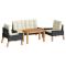Salon de jardin 4 pcs et coussins Résine tressée et bois massifProfitez d'un moment de café confortable dans votre espace extérieur avec cet ensemble de salon de jardin ! C'est un complément parfait à votre jardin et à votre terrasse, créant une impression durable ! Matériau haut de gamme : la résine tressée est un matériau de résistance exceptionnelle et durable dans différentes conditions météorologiques.Coussins moelleux : les coussins épais et amovibles du salon de jardin sont inclus pour offrir le plus grand confort d'assise.Accoudoirs et dossier confortables : vos bras et votre dos peuvent se reposer confortablement grâce aux accoudoirs et au dossier.Dessus robuste : le dessus de table robuste de cette table de jardin vous offre de l'espace pour placer des collations, des paniers de fruits, des objets décoratifs, ainsi que divers autres articles essentiels. Remarque :Chaque produit est livré avec un manuel de montage dans la boîte pour un montage facile.Afin de prolonger la durée de vie de votre mobilier d'extérieur, nous vous recommandons de le protéger avec une housse imperméable. Maximum 110 kg par siège. Soyez conscient du risque de feux ouverts et d'autres sources de forte chaleur à proximité du produit.