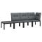 Salon de jardin 4 pcs noir et gris résine tresséeCet ensemble de salon de jardin tendance, au design élégant et contemporain, est un choix parfait pour vous détendre dans votre jardin. Matériau résistant aux intempéries : la résine tressée, également connue sous le nom de rotin poly, résiste aux intempéries et est facile à nettoyer. Elle reste belle à l'extérieur pendant une longue période. Elle offre une excellente qualité, commodité et un aspect esthétique. Cadre robuste et stable : le cadre en acier enduit de poudre de l'ensemble de salon garantit la robustesse et la stabilité. Expérience d'assise confortable : le dossier ajoute un confort d'assise supplémentaire au canapé de jardin. De plus, les coussins bien rembourrés offrent du confort pendant votre temps d'assise. Conception modulaire : le salon d'extérieur est flexible et facile à déplacer, vous pouvez donc le combiner avec d'autres segments modulaires dans la boutique en ligne pour créer vos propres configurations d'ensemble de salon de jardin ! Repose-pied pratique : vous pouvez vous détendre et poser vos pieds sur le repose-pied inclus. Bon à savoir : Pour faciliter au maximum le montage, chaque produit est livré avec des instructions. Remarque : Pour que vos meubles d'extérieur restent beaux, nous vous recommandons de les protéger avec une housse imperméable. Maximum 110 kg par siège. Soyez conscient du risque de feux ouverts et d'autres sources de forte chaleur à proximité du produit. ,