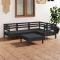 Salon de jardin 5 pcs Bois de pin massif NoirCet ensemble de salon de jardin en bois est un choix idéal pour vous détendre, profiter du beau temps, faire une sieste ou discuter en famille ou entre amis. Avec son design intemporel de palette, l'ensemble de canapés en bois ajoute une touche de charme rustique à votre terrasse, jardin ou salon. Fabriqué en bois de pin massif, cet ensemble de mobilier d'extérieur est très durable et résistant aux intempéries. Cet ensemble de canapés a une construction solide et nécessite peu d'entretien. De plus, la conception modulaire permet également de placer l'ensemble dans n'importe quel arrangement selon vos goûts. Remarque : afin de prolonger la durée de vie des meubles d'extérieur, nous vous recommandons de les protéger avec une housse imperméable. Maximum 110 kg par siège.