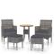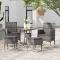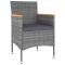 Salon de jardin 5 pcs Résine tressée GrisAjoutez une touche de style moderne avec cet ensemble de meubles de jardin, conçu pour compléter n'importe quel espace, tel que le patio, le bord de la piscine, le porche, la terrasse et le balcon. Avec un cadre en acier enduit de poudre enveloppé en résine tressée, cet ensemble de meubles d'extérieur est durable. Le dessus de table est fait de bois d'acacia massif, un bois franc avec des grains denses. De plus, le coussin d'assise rembourré épais ajoute un confort supplémentaire à la chaise. Remarque : afin de prolonger la durée de vie des meubles d'extérieur, nous vous recommandons de les protéger avec une housse imperméable. Maximum 110 kg par siège. Soyez conscient du risque de feu ouvert et d'autres sources de forte chaleur à proximité de l'appareil.