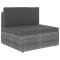 Salon de jardin 5 pcs Résine tressée GrisCe salon de jardin en résine tressée est une combinaison parfaite de style et de fonctionnalité. Avec cela dans votre jardin, vous pouvez passer du temps relaxant et apaisant avec votre famille et vos amis. Grâce à la résine tressée résistante aux intempéries, le siège est facile à nettoyer, résistant à l'usure et adapté à un usage quotidien. Le canapé est doté d'un cadre en acier enduit de poudre robuste, qui est très durable. Les coussins d'assise et de dossier amovibles sont bien rembourrés, afin d'offrir un grand confort d'assise. Une table basse au design sobre peut contenir vos livres, magazines et du thé pour un moment apaisant et relaxant. De plus, grâce à sa conception modulaire, toutes les pièces peuvent être arrangées et personnalisées selon vos besoins. Cet ensemble de sièges sera sûrement le point de mire de votre jardin ou patio. Remarque : nous vous recommandons de couvrir l'ensemble pendant la pluie, la neige et le gel.