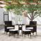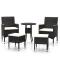 Salon de jardin 5 pcs Résine tressée NoirAjoutez une touche de style moderne avec cet ensemble de meubles de jardin, conçu pour compléter n'importe quel espace, tel que le patio, le bord de la piscine, le porche, la terrasse et le balcon. Avec un cadre en acier enduit de poudre enveloppé en résine tressée, cet ensemble de meubles d'extérieur est durable. De plus, le coussin d'assise bien rembourré ajoute un confort supplémentaire à la chaise. Remarque : afin de prolonger la durée de vie des meubles d'extérieur, nous vous recommandons de les protéger avec une housse imperméable. Maximum 110 kg par siège. Soyez conscient du risque de feu ouvert et d'autres sources de forte chaleur à proximité de l'appareil.