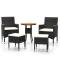 Salon de jardin 5 pcs Résine tressée NoirAjoutez une touche de style moderne avec cet ensemble de meubles de jardin, conçu pour compléter n'importe quel espace, tel que le patio, le bord de la piscine, le porche, la terrasse et le balcon. Avec un cadre en acier enduit de poudre enveloppé en résine tressée, cet ensemble de meubles d'extérieur est durable. Le dessus de table est fait de bois d'acacia massif, un bois franc avec des grains denses. De plus, le coussin d'assise rembourré épais ajoute un confort supplémentaire à la chaise. Remarque : afin de prolonger la durée de vie des meubles d'extérieur, nous vous recommandons de les protéger avec une housse imperméable. Maximum 110 kg par siège. Soyez conscient du risque de feu ouvert et d'autres sources de forte chaleur à proximité de l'appareil.