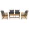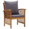 Salon de jardin 5 pcs avec coussins Bois d'acacia solideL'ensemble de salon de jardin en bois ajoute un look vintage et est spécialement conçu pour votre jardin, patio ou autre espace de vie extérieur ! L'ensemble de meubles d'extérieur est construit en bois d'acacia massif avec une finition à l'huile, ce qui le rend stable et durable. Les coussins épais d'assise et de dossier rendent l'ensemble doux pour vous y asseoir. Grâce au dessus de table en bois massif au design à lattes, la table basse vous offre de l'espace pour mettre vos collations, paniers de fruits, objets décoratifs, ainsi que d'autres essentiels. Le dossier légèrement incurvé et les accoudoirs ajoutent au confort d'assise de la chaise. Remarque importante : les couleurs et les grains varient d'une pièce à l'autre, rendant chaque pièce unique. La livraison est aléatoire, ce qui garantit l'exclusivité et l'individualité de votre produit. Maximum 110 kg par siège.
