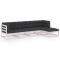 Salon de jardin 5 pcs avec coussins Bois de pin massifCe salon de jardin est un excellent choix pour vous détendre et profiter du beau temps, faire une sieste ou discuter avec votre famille ou vos amis. L'ensemble de salon de jardin est fabriqué en bois de pin massif, ce qui le rend robuste et stable. Les coussins ajoutent un confort supplémentaire. Vous pouvez le combiner avec d'autres segments modulaires pour créer vos propres configurations de salon de jardin ! Remarque : afin de prolonger la durée de vie des meubles d'extérieur, nous vous recommandons de les protéger avec une housse imperméable. Maximum 110 kg par siège.