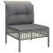 Salon de jardin 5 pcs avec coussins Gris Résine tresséeProfitez d'un moment de café confortable dans votre espace extérieur avec cet ensemble de salon de jardin ! C'est un complément parfait à votre jardin et à votre terrasse, créant une impression durable ! Matériau résistant aux intempéries : la résine tressée, également connue sous le nom de rotin poly, résiste aux intempéries et est facile à nettoyer. Elle reste belle à l'extérieur pendant une longue période. Elle offre une excellente qualité, commodité et un aspect esthétique.Cadre robuste : le cadre en acier enduit de poudre rend l'ensemble de salon d'extérieur robuste et stable pour une utilisation quotidienne à l'extérieur.Expérience d'assise confortable : les dossiers ajoutent un confort d'assise supplémentaire pour l'ensemble de salon de terrasse. De plus, les coussins bien rembourrés offrent du confort pendant votre temps d'assise.Conception modulaire : chaque article est flexible et facile à déplacer, vous pouvez donc la combiner avec d'autres segments modulaires dans la boutique en ligne pour créer vos propres configurations de salon de jardin ! Remarque :Pour que vos meubles d'extérieur restent beaux, nous vous recommandons de les protéger avec une housse imperméable. Maximum 110 kg par siège. Soyez conscient du risque de feu ouvert et d'autres sources de forte chaleur à proximité de l'appareil.