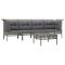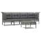Salon de jardin 5 pcs avec coussins Gris Résine tresséeProfitez d'un moment de café confortable dans votre espace extérieur avec cet ensemble de salon de jardin ! C'est un complément parfait à votre jardin et à votre terrasse, créant une impression durable ! Matériau résistant aux intempéries : la résine tressée, également connue sous le nom de rotin poly, résiste aux intempéries et est facile à nettoyer. Elle reste belle à l'extérieur pendant une longue période. Elle offre une excellente qualité, commodité et un aspect esthétique.Cadre robuste : le cadre en acier enduit de poudre rend l'ensemble de salon d'extérieur robuste et stable pour une utilisation quotidienne à l'extérieur.Expérience d'assise confortable : les dossiers ajoutent un confort d'assise supplémentaire pour l'ensemble de salon de terrasse. De plus, les coussins bien rembourrés offrent du confort pendant votre temps d'assise.Conception modulaire : chaque article est flexible et facile à déplacer, vous pouvez donc la combiner avec d'autres segments modulaires dans la boutique en ligne pour créer vos propres configurations de salon de jardin ! Remarque :Pour que vos meubles d'extérieur restent beaux, nous vous recommandons de les protéger avec une housse imperméable. Maximum 110 kg par siège. Soyez conscient du risque de feu ouvert et d'autres sources de forte chaleur à proximité de l'appareil.