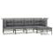 Salon de jardin 5 pcs avec coussins Gris Résine tresséeProfitez d'un moment de café confortable dans votre espace extérieur avec cet ensemble de salon de jardin ! C'est un complément parfait à votre jardin et à votre terrasse, créant une impression durable ! Matériau résistant aux intempéries : la résine tressée, également connue sous le nom de rotin poly, résiste aux intempéries et est facile à nettoyer. Elle reste belle à l'extérieur pendant une longue période. Elle offre une excellente qualité, commodité et un aspect esthétique.Cadre robuste : le cadre en acier enduit de poudre rend l'ensemble de salon d'extérieur robuste et stable pour une utilisation quotidienne à l'extérieur.Expérience d'assise confortable : les dossiers ajoutent un confort d'assise supplémentaire pour l'ensemble de salon de terrasse. De plus, les coussins bien rembourrés offrent du confort pendant votre temps d'assise.Conception modulaire : chaque article est flexible et facile à déplacer, vous pouvez donc la combiner avec d'autres segments modulaires dans la boutique en ligne pour créer vos propres configurations de salon de jardin ! Remarque :Pour que vos meubles d'extérieur restent beaux, nous vous recommandons de les protéger avec une housse imperméable. Maximum 110 kg par siège. Soyez conscient du risque de feu ouvert et d'autres sources de forte chaleur à proximité de l'appareil.