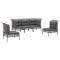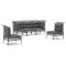 Salon de jardin 5 pcs avec coussins Gris Résine tresséeProfitez d'un moment de café confortable dans votre espace extérieur avec cet ensemble de salon de jardin ! C'est un complément parfait à votre jardin et à votre terrasse, créant une impression durable ! Matériau résistant aux intempéries : la résine tressée, également connue sous le nom de rotin poly, résiste aux intempéries et est facile à nettoyer. Elle reste belle à l'extérieur pendant une longue période. Elle offre une excellente qualité, commodité et un aspect esthétique.Cadre robuste : le cadre en acier enduit de poudre rend l'ensemble de salon d'extérieur robuste et stable pour une utilisation quotidienne à l'extérieur.Expérience d'assise confortable : les dossiers ajoutent un confort d'assise supplémentaire pour l'ensemble de salon de terrasse. De plus, les coussins bien rembourrés offrent du confort pendant votre temps d'assise.Conception modulaire : chaque article est flexible et facile à déplacer, vous pouvez donc la combiner avec d'autres segments modulaires dans la boutique en ligne pour créer vos propres configurations de salon de jardin ! Remarque :Pour que vos meubles d'extérieur restent beaux, nous vous recommandons de les protéger avec une housse imperméable. Maximum 110 kg par siège. Soyez conscient du risque de feu ouvert et d'autres sources de forte chaleur à proximité de l'appareil.