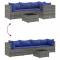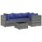 Salon de jardin 5 pcs avec coussins Gris Résine tresséeCet ensemble de salon de jardin est le complément parfait de votre arrière-cour, terrasse ou patio, offrant un espace confortable et accueillant pour discuter avec la famille et les amis ou simplement se détendre et profiter de l'extérieur. Matériau durable : la résine tressée, également connue sous le nom de poly rotin, est un matériau synthétique solide et nécessitant peu d'entretien qui ressemble au rotin naturel. Elle est légère, facile à nettoyer et couramment utilisée pour les meubles d'extérieur en raison de sa durabilité et de ses propriétés de résistance aux intempéries.Cadre robuste et stable : le cadre en acier enduit de poudre est solide, stable, durable et résistant à la corrosion et aux intempéries, ce qui garantit des performances durables.Dessus en verre : le dessus de la table d'extérieur est fabriqué en verre trempé solide et durable, ce qui le rend facile à nettoyer avec un chiffon humide et ajoute une touche d'élégance à votre espace extérieur.Conception modulaire : cet ensemble de meubles d'extérieur a une conception modulaire, ce qui le rend complètement flexible et facile à déplacer, afin que vous puissiez créer un agencement de meubles d'extérieur personnalisé.Expérience d'assise confortable : ce mobilier d'extérieur, doté de coussins épais, offre une expérience d'assise confortable. Bon à savoir :Pour que vos meubles d'extérieur restent beaux, nous vous recommandons de les protéger avec une housse imperméable. Maximum 110 kg par siège.