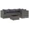 Salon de jardin 5 pcs avec coussins Gris Résine tresséeCet ensemble de salon de jardin est le complément parfait de votre arrière-cour, terrasse ou patio, offrant un espace confortable et accueillant pour discuter avec la famille et les amis ou simplement se détendre et profiter de l'extérieur. Matériau durable : la résine tressée, également connue sous le nom de poly rotin, est un matériau synthétique solide et nécessitant peu d'entretien qui ressemble au rotin naturel. Elle est légère, facile à nettoyer et couramment utilisée pour les meubles d'extérieur en raison de sa durabilité et de ses propriétés de résistance aux intempéries.Cadre robuste et stable : le cadre en acier enduit de poudre est solide, stable, durable et résistant à la corrosion et aux intempéries, ce qui garantit des performances durables.Dessus en verre : le dessus de la table d'extérieur est fabriqué en verre trempé solide et durable, ce qui le rend facile à nettoyer avec un chiffon humide et ajoute une touche d'élégance à votre espace extérieur.Conception modulaire : cet ensemble de meubles d'extérieur a une conception modulaire, ce qui le rend complètement flexible et facile à déplacer, afin que vous puissiez créer un agencement de meubles d'extérieur personnalisé.Expérience d'assise confortable : ce mobilier d'extérieur, doté de coussins épais, offre une expérience d'assise confortable. Bon à savoir :Pour que vos meubles d'extérieur restent beaux, nous vous recommandons de les protéger avec une housse imperméable. Maximum 110 kg par siège.