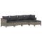 Salon de jardin 5 pcs avec coussins Gris Résine tresséeCet ensemble de salon de jardin tendance, au design élégant et contemporain, est un excellent choix pour vous détendre dans votre jardin. Matériau durable : la résine tressée, également connue sous le nom de rotin poly, résiste aux intempéries et est facile à nettoyer. Elle reste belle à l'extérieur pendant une longue période. Elle est plus économique que d'autres matériaux, tout en offrant une excellente qualité, une commodité et un aspect esthétique.Cadre stable : l'acier est un matériau exceptionnellement dur et résistant. Il offre robustesse et stabilité. Le revêtement en poudre sur l'acier crée une couche protectrice contre l'usure.Conception modulaire : chaque pièce est facile à déplacer, ce qui vous permet de créer facilement différents agencements adaptés à vos besoins. Vous pouvez également trouver les pièces individuelles dans notre boutique en ligne pour arranger vos propres modèles de meubles.Expérience de siège confortable : avec les coussins de siège et de dossier bien rembourrés, l'ensemble de salon d'extérieur est très confortable. Bon à savoir :Pour faciliter au maximum le montage, chaque produit est livré avec des instructions. Remarque :Pour que vos meubles d'extérieur restent beaux, nous vous recommandons de les protéger avec une housse imperméable. Maximum 110 kg par siège.
