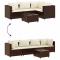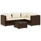 Salon de jardin 5 pcs avec coussins Marron Résine tresséeCet ensemble de salon de jardin est le complément parfait de votre arrière-cour, terrasse ou patio, offrant un espace confortable et accueillant pour discuter avec la famille et les amis ou simplement se détendre et profiter de l'extérieur. Matériau durable : la résine tressée, également connue sous le nom de poly rotin, est un matériau synthétique solide et nécessitant peu d'entretien qui ressemble au rotin naturel. Elle est légère, facile à nettoyer et couramment utilisée pour les meubles d'extérieur en raison de sa durabilité et de ses propriétés de résistance aux intempéries.Cadre robuste et stable : le cadre en acier enduit de poudre est solide, stable, durable et résistant à la corrosion et aux intempéries, ce qui garantit des performances durables.Dessus en verre : le dessus de la table d'extérieur est fabriqué en verre trempé solide et durable, ce qui le rend facile à nettoyer avec un chiffon humide et ajoute une touche d'élégance à votre espace extérieur.Conception modulaire : cet ensemble de meubles d'extérieur a une conception modulaire, ce qui le rend complètement flexible et facile à déplacer, afin que vous puissiez créer un agencement de meubles d'extérieur personnalisé.Expérience d'assise confortable : ce mobilier d'extérieur, doté de coussins épais, offre une expérience d'assise confortable. Bon à savoir :Pour que vos meubles d'extérieur restent beaux, nous vous recommandons de les protéger avec une housse imperméable. Maximum 110 kg par siège.