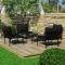 Salon de jardin 5 pcs avec coussins Noir PVCCet ensemble de mobilier de jardin combine le style et la fonctionnalité et va devenir le point de mire de votre jardin ou patio. Le mobilier entier est conçu pour être utilisé à l'extérieur toute l'année. Grâce au cadre robuste en acier enduit de poudre et au fil de PVC résistant aux intempéries, l'ensemble de salon est très durable, résistant à l'usure et facile à nettoyer. Les coussins amovibles sont bien rembourré et doux, ce qui vous assure un confort d'assise optimal. Tous les articles en sections sont légers et modulaires, ce qui les rend totalement flexibles et faciles à déplacer pour s'adapter à n'importe quel environnement. L'assemblage est nécessaire. Remarque : nous vous recommandons de couvrir l'ensemble pendant la pluie, la neige et le gel.
