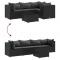 Salon de jardin 5 pcs avec coussins Noir Résine tresséeCet ensemble de salon de jardin est le complément parfait de votre arrière-cour, terrasse ou patio, offrant un espace confortable et accueillant pour discuter avec la famille et les amis ou simplement se détendre et profiter de l'extérieur. Matériau durable : la résine tressée, également connue sous le nom de poly rotin, est un matériau synthétique solide et nécessitant peu d'entretien qui ressemble au rotin naturel. Elle est légère, facile à nettoyer et couramment utilisée pour les meubles d'extérieur en raison de sa durabilité et de ses propriétés de résistance aux intempéries.Cadre robuste et stable : le cadre en acier enduit de poudre est solide, stable, durable et résistant à la corrosion et aux intempéries, ce qui garantit des performances durables.Dessus en verre : le dessus de la table d'extérieur est fabriqué en verre trempé solide et durable, ce qui le rend facile à nettoyer avec un chiffon humide et ajoute une touche d'élégance à votre espace extérieur.Conception modulaire : cet ensemble de meubles d'extérieur a une conception modulaire, ce qui le rend complètement flexible et facile à déplacer, afin que vous puissiez créer un agencement de meubles d'extérieur personnalisé.Expérience d'assise confortable : ce mobilier d'extérieur, doté de coussins épais, offre une expérience d'assise confortable. Bon à savoir :Pour que vos meubles d'extérieur restent beaux, nous vous recommandons de les protéger avec une housse imperméable. Maximum 110 kg par siège.