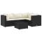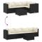 Salon de jardin 5 pcs avec coussins Noir Résine tresséeCet ensemble de salon de jardin est le complément parfait de votre arrière-cour, terrasse ou patio, offrant un espace confortable et accueillant pour discuter avec la famille et les amis ou simplement se détendre et profiter de l'extérieur. Matériau durable : la résine tressée, également connue sous le nom de poly rotin, est un matériau synthétique solide et nécessitant peu d'entretien qui ressemble au rotin naturel. Elle est légère, facile à nettoyer et couramment utilisée pour les meubles d'extérieur en raison de sa durabilité et de ses propriétés de résistance aux intempéries. Cadre robuste et stable : le cadre en acier enduit de poudre est solide, stable, durable et résistant à la corrosion et aux intempéries, ce qui garantit des performances durables. Dessus en verre : le dessus de la table d'extérieur est fabriqué en verre trempé solide et durable, ce qui le rend facile à nettoyer avec un chiffon humide et ajoute une touche d'élégance à votre espace extérieur. Conception modulaire : cet ensemble de meubles d'extérieur a une conception modulaire, ce qui le rend complètement flexible et facile à déplacer, afin que vous puissiez créer un agencement de meubles d'extérieur personnalisé. Expérience d'assise confortable : ce mobilier d'extérieur, doté de coussins épais, offre une expérience d'assise confortable. Bon à savoir : Pour que vos meubles d'extérieur restent beaux, nous vous recommandons de les protéger avec une housse imperméable. Maximum 110 kg par siège.