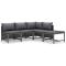 Salon de jardin 5 pcs avec coussins Résine tressée GrisCréez un coin salon relaxant avec cet ensemble de salon de jardin en résine tressée. Cet ensemble de salon de jardin confortable, doté d'un cadre en acier enduit de poudre recouvert de résine tressée, est robuste et facile à nettoyer. Les coussins bien rembourrés ajoutent un confort supplémentaire pendant votre temps de détente. Les housses de coussin sont amovibles et lavables avec des fermetures éclair. En outre, le repose-pied peut également servir de table basse pour accueillir vos divers objets de première nécessité. Cet ensemble de salon d'extérieur est facile à déplacer avec une construction légère. Grâce à la conception modulaire, vous pouvez placer l'ensemble dans n'importe quel arrangement selon votre goût. Remarque importante : nous vous recommandons de couvrir le salon pendant la pluie, la neige et le gel pour une utilisation durable.