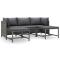 Salon de jardin 5 pcs avec coussins Résine tressée GrisCréez un coin salon relaxant avec cet ensemble de salon de jardin en résine tressée. Cet ensemble de salon de jardin confortable, doté d'un cadre en acier enduit de poudre recouvert de résine tressée, est robuste et facile à nettoyer. Les coussins bien rembourrés ajoutent un confort supplémentaire pendant votre temps de détente. Les housses de coussin sont amovibles et lavables avec des fermetures éclair. En outre, le repose-pied peut également servir de table basse pour accueillir vos divers objets de première nécessité. Cet ensemble de salon d'extérieur est facile à déplacer avec une construction légère. Grâce à la conception modulaire, vous pouvez placer l'ensemble dans n'importe quel arrangement selon votre goût. Remarque importante : nous vous recommandons de couvrir le salon pendant la pluie, la neige et le gel pour une utilisation durable.
