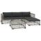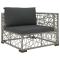 Salon de jardin 5 pcs avec coussins Résine tressée GrisCet ensemble de canapé en rotin combine le style et la fonctionnalité et va devenir le point central de votre jardin ou patio. Le mobilier entier est conçu pour être utilisé à l'extérieur toute l'année. Grâce à la résine tressée résistante aux intempéries et à l'eau, ce mobilier est facile à nettoyer, résistant à l'usure et adapté à un usage quotidien. L'ensemble de sièges dispose d'un cadre en acier enduit de poudre, qui est extrêmement durable. Le mobilier est également léger et modulable, ce qui le rend entièrement flexible et facile à déplacer pour s'adapter à n'importe quel environnement. Les coussins épais et amovibles sont extrêmement confortables. La livraison comprend 2 canapés d'angle, 1 canapé central, 1 repose-pieds, 1 table basse, 4 coussins d'assise et 3 coussins de dossier. Remarque : nous recommandons de couvrir l'ensemble pendant la pluie, la neige et le gel.