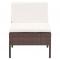 Salon de jardin 5 pcs avec coussins Résine tressée MarronCréez un espace de détente captivant et relaxant dont vous avez toujours rêvé avec notre salon de jardin. Vous pouvez profiter d'un après-midi ou d'une soirée d'été ensoleillée et relaxante avec votre famille et vos amis grâce à cet ensemble de salon modulaire ! L'ensemble est livré avec 5 pièces afin que vous puissiez choisir différentes dispositions et combinaisons selon vos préférences. Construit à partir de résine tressée durable sur un cadre en acier enduit de poudre, cet ensemble est durable, robuste et résistant aux intempéries. Grâce à la résine tressée toutes saisons, le salon de jardin est facile à nettoyer, résistant à l'usure et adapté à un usage quotidien. Les coussins épaississement rembourrés et les sièges modernes extra profonds vous feront revenir pour plonger dans la détente. De plus, grâce à sa conception légère et modulaire, vous pouvez déplacer cet ensemble de salon de jardin dans votre maison avec une grande facilité. Remarque : Nous vous recommandons de couvrir l'ensemble en rotin pendant la pluie, la neige et le gel.