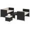 Salon de jardin 5 pcs avec coussins Résine tressée NoirÉgayez vos espaces extérieurs monotones avec notre salon de jardin de 5 pièces. Il rendra sûrement vos extérieurs aussi accueillants que les espaces intérieurs. Ce salon de jardin est fait d'un cadre en acier résistant avec de la résine tressée, garantissant des années d'utilisation fiable à l'extérieur. Vous pouvez vous détendre pendant votre temps de loisir avec des coussins et des oreillers rembourrés épais. La housse de coussin présente un design à fermeture éclair pour un lavage facile. De plus, vous pouvez placer vos magazines, livres, boissons et collations et les garder à portée de main avec la table basse incluse. La livraison comprend 1 banc, 1 banc sans dossier, 1 table basse et 2 tabourets.