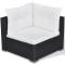 Salon de jardin 5 pcs avec coussins Résine tressée NoirCet ensemble de canapés et table de jardin en rotin sera un excellent supplément à votre espace de vie extérieur. Il ajoutera une touche d'élégance à votre patio, balcon ou jardin avec son design discret mais élégant. Fabriqué en rotin PE résistant aux intempéries et imperméable, l'ensemble est facile à nettoyer, résistant à l'usure et adapté à un usage quotidien. Le cadre en acier enduit de poudre rend l'ensemble très solide et durable. Grâce à sa construction légère, il est facile à déplacer. Cet ensemble est livré avec des coussins d'assise et de dossier très confortables, bien rembourrés. Les housses des coussins sont amovibles et lavables. La livraison comprend 2 canapés d'angle, 1 canapé central, 1 tabouret, 1 table basse et 9 coussins. Remarque : nous vous recommandons de couvrir l'ensemble pendant la pluie, la neige et le gel. ,