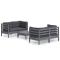 Salon de jardin 5 pcs avec coussins anthracite bois de pinCe salon de jardin est un excellent choix pour vous détendre et profiter du beau temps, faire une sieste ou discuter avec votre famille ou vos amis. Le salon de patio est fabriqué en bois de pin massif, ce qui le rend robuste et stable. Les coussins ajoutent un confort supplémentaire. Vous pouvez le combiner avec d'autres segments modulaires pour créer vos propres configurations de salon de jardin ! Remarque : afin de prolonger la durée de vie des meubles d'extérieur, nous vous recommandons de les protéger avec une housse imperméable. Maximum 110 kg par siège.