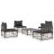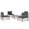 Salon de jardin 5 pcs avec coussins anthracite résine tresséeProfitez d'un moment de café confortable dans votre espace extérieur avec cet ensemble de salon de jardin ! C'est un complément parfait à votre jardin et à votre terrasse, créant une impression durable ! Matériau résistant aux intempéries : le poly rotin est résistant aux intempéries et facile à nettoyer. Il reste beau à l'extérieur pendant une longue période de temps. Il est plus économique que d'autres matériaux, tout en offrant une excellente qualité, une commodité et un aspect esthétique.Cadre robuste et stable : le cadre en acier de l'ensemble de salon assure robustesse et stabilité.Expérience d'assise confortable : le dossier ajoute un confort d'assise supplémentaire pour l'ensemble de salon. De plus, les coussins bien rembourrés offrent un confort pour votre temps d'assise.Dessus de table robuste : le dessus de table robuste de la table basse est parfait pour placer des repas, des boissons, des vases, des bols de fruits ou d'autres objets décoratifs.Conception modulaire : l'ensemble de salon de jardin est flexible et facile à déplacer, vous pouvez donc le combiner avec d'autres segments modulaires de la boutique en ligne pour créer vos propres configurations personnelles de salon de jardin ! Remarque :Pour que vos meubles d'extérieur restent beaux, nous vous recommandons de les protéger avec une housse imperméable. Maximum 110 kg par siège. Soyez conscient du risque de feu ouvert et d'autres sources de forte chaleur à proximité de l'appareil.
