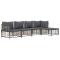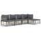 Salon de jardin 5 pcs avec coussins anthracite résine tresséeProfitez d'un moment de café confortable dans votre espace extérieur avec cet ensemble de salon de jardin ! C'est un complément parfait à votre jardin et à votre terrasse, créant une impression durable ! Matériau résistant aux intempéries : le poly rotin est résistant aux intempéries et facile à nettoyer. Il reste beau à l'extérieur pendant une longue période de temps. Il est plus économique que d'autres matériaux, tout en offrant une excellente qualité, une commodité et un aspect esthétique.Cadre robuste et stable : le cadre en acier de l'ensemble de salon assure robustesse et stabilité.Expérience d'assise confortable : le dossier ajoute un confort d'assise supplémentaire pour l'ensemble de salon. De plus, les coussins bien rembourrés offrent un confort pour votre temps d'assise.Conception modulaire : l'ensemble de salon de jardin est flexible et facile à déplacer, vous pouvez donc le combiner avec d'autres segments modulaires de la boutique en ligne pour créer vos propres configurations personnelles de salon de jardin ! Remarque :Pour que vos meubles d'extérieur restent beaux, nous vous recommandons de les protéger avec une housse imperméable. Maximum 110 kg par siège. Soyez conscient du risque de feu ouvert et d'autres sources de forte chaleur à proximité de l'appareil.