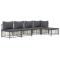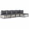 Salon de jardin 5 pcs avec coussins anthracite résine tresséeProfitez d'un moment de café confortable dans votre espace extérieur avec cet ensemble de salon de jardin ! C'est un complément parfait à votre jardin et à votre terrasse, créant une impression durable ! Matériau résistant aux intempéries : le poly rotin est résistant aux intempéries et facile à nettoyer. Il reste beau à l'extérieur pendant une longue période de temps. Il est plus économique que d'autres matériaux, tout en offrant une excellente qualité, une commodité et un aspect esthétique.Cadre robuste et stable : le cadre en acier de l'ensemble de salon assure robustesse et stabilité.Expérience d'assise confortable : le dossier ajoute un confort d'assise supplémentaire pour l'ensemble de salon. De plus, les coussins bien rembourrés offrent un confort pour votre temps d'assise.Conception modulaire : l'ensemble de salon de jardin est flexible et facile à déplacer, vous pouvez donc le combiner avec d'autres segments modulaires de la boutique en ligne pour créer vos propres configurations personnelles de salon de jardin ! Remarque :Pour que vos meubles d'extérieur restent beaux, nous vous recommandons de les protéger avec une housse imperméable. Maximum 110 kg par siège. Soyez conscient du risque de feu ouvert et d'autres sources de forte chaleur à proximité de l'appareil.