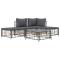 Salon de jardin 5 pcs avec coussins anthracite résine tresséeProfitez d'un moment de café confortable dans votre espace extérieur avec cet ensemble de salon de jardin ! C'est un complément parfait à votre jardin et à votre terrasse, créant une impression durable ! Matériau résistant aux intempéries : le poly rotin est résistant aux intempéries et facile à nettoyer. Il reste beau à l'extérieur pendant une longue période de temps. Il est plus économique que d'autres matériaux, tout en offrant une excellente qualité, une commodité et un aspect esthétique.Cadre robuste et stable : le cadre en acier de l'ensemble de salon assure robustesse et stabilité.Expérience d'assise confortable : le dossier ajoute un confort d'assise supplémentaire pour l'ensemble de salon. De plus, les coussins bien rembourrés offrent un confort pour votre temps d'assise.Dessus de table robuste : le dessus de table robuste de la table basse est parfait pour placer des repas, des boissons, des vases, des bols de fruits ou d'autres objets décoratifs.Conception modulaire : l'ensemble de salon de jardin est flexible et facile à déplacer, vous pouvez donc le combiner avec d'autres segments modulaires de la boutique en ligne pour créer vos propres configurations personnelles de salon de jardin ! Remarque :Pour que vos meubles d'extérieur restent beaux, nous vous recommandons de les protéger avec une housse imperméable. Maximum 110 kg par siège. Soyez conscient du risque de feu ouvert et d'autres sources de forte chaleur à proximité de l'appareil.