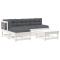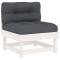 Salon de jardin 5 pcs avec coussins blanc bois massifCe salon de jardin en bois, qui se démarque par son design à lattes et ses coussins moelleux, sera un excellent supplément à votre jardin, patio ou terrasse pour profiter d'un moment agréable avec votre famille ou vos amis. Bois de pin massif : le bois de pin massif est un matériau naturel magnifique. Le bois de pin a un grain droit et les noeuds donnent au matériau son aspect caractéristique et rustique.Cadre robuste et stable : le cadre en bois rend l'ensemble de salon robuste et stable pour une utilisation quotidienne à l'extérieur.Expérience d'assise confortable : le dossier et l'accoudoir ajoutent un confort d'assise supplémentaire à l'ensemble de meubles de jardin. De plus, les coussins bien rembourrés vous permettent de vous asseoir confortablement.Design modulaire : le canapé est flexible et facile à déplacer. Vous pouvez le combiner avec d'autres segments modulaires de la boutique en ligne pour créer vos propres configurations de salon de jardin ! Bon à savoir :Pour que vos meubles d'extérieur restent beaux, nous vous recommandons de les protéger avec une housse imperméable. Maximum 110 kg par siège.