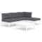 Salon de jardin 5 pcs avec coussins blanc bois de pinCet ensemble de salon de jardin en bois est un choix excellent pour vous détendre et profiter du bon temps, faire une sieste ou discuter avec votre famille ou vos amis. Le salon de patio est fabriqué en bois de pin massif, ce qui le rend robuste et stable. Les coussins ajoutent un confort supplémentaire. Vous pouvez le combiner avec d'autres segments modulaires pour créer vos propres configurations de salon de jardin ! Remarque : afin de prolonger la durée de vie des meubles d'extérieur, nous vous recommandons de les protéger avec une housse imperméable. Maximum 110 kg par siège.