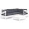 Salon de jardin 5 pcs avec coussins blanc bois de pin – OBJET NON VENDU – VENTE TERMINÉE