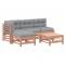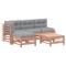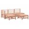 Salon de jardin 5 pcs avec coussins bois massif douglasCe salon de jardin en bois, qui se démarque par son design à lattes et ses coussins moelleux, sera un excellent supplément à votre jardin, patio ou terrasse pour profiter d'un moment agréable avec votre famille ou vos amis. Bois de douglas massif : le bois de douglas massif est un bois très durable qui fonctionne bien pour l'extérieur. Le bois de douglas est également suffisamment solide pour être travaillé avec un minimum de soin, même sous l'influence des intempéries.Cadre robuste et stable : le cadre en bois rend l'ensemble de salon robuste et stable pour une utilisation quotidienne à l'extérieur.Expérience d'assise confortable : le dossier et l'accoudoir ajoutent un confort d'assise supplémentaire à l'ensemble de meubles de jardin. De plus, les coussins bien rembourrés vous permettent de vous asseoir confortablement.Design modulaire : le canapé est flexible et facile à déplacer. Vous pouvez le combiner avec d'autres segments modulaires de la boutique en ligne pour créer vos propres configurations de salon de jardin ! Bon à savoir :Pour que vos meubles d'extérieur restent beaux, nous vous recommandons de les protéger avec une housse imperméable. Maximum 110 kg par siège.