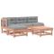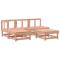 Salon de jardin 5 pcs avec coussins bois massif douglasCe salon de jardin en bois, qui se démarque par son design à lattes et ses coussins moelleux, sera un excellent supplément à votre jardin, patio ou terrasse pour profiter d'un moment agréable avec votre famille ou vos amis. Bois de douglas massif : le bois de douglas massif est un bois très durable qui fonctionne bien pour l'extérieur. Le bois de douglas est également suffisamment solide pour être travaillé avec un minimum de soin, même sous l'influence des intempéries.Cadre robuste et stable : le cadre en bois rend l'ensemble de salon robuste et stable pour une utilisation quotidienne à l'extérieur.Expérience d'assise confortable : le dossier et l'accoudoir ajoutent un confort d'assise supplémentaire à l'ensemble de meubles de jardin. De plus, les coussins bien rembourrés vous permettent de vous asseoir confortablement.Design modulaire : le canapé est flexible et facile à déplacer. Vous pouvez le combiner avec d'autres segments modulaires de la boutique en ligne pour créer vos propres configurations de salon de jardin ! Bon à savoir :Pour que vos meubles d'extérieur restent beaux, nous vous recommandons de les protéger avec une housse imperméable. Maximum 110 kg par siège.
